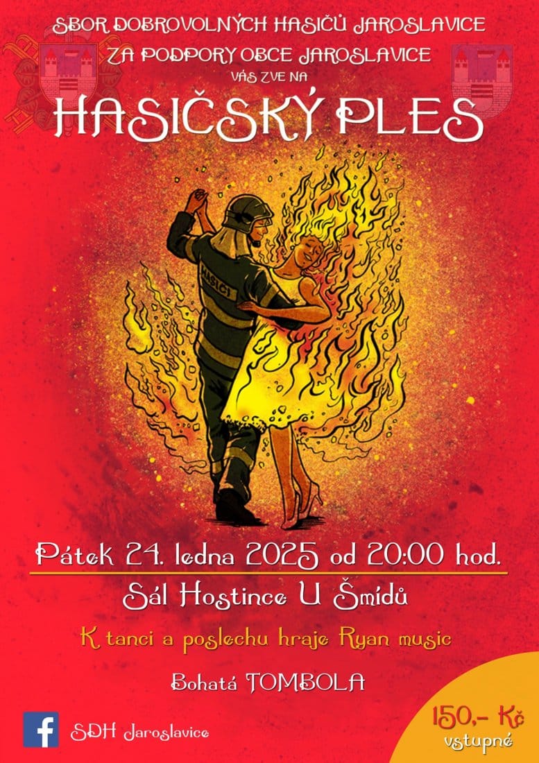 Sdružení dobrovolných hasičů Jaroslavice zve na svůj tradiční lednový Hasičský ples do Hostince U Šmídů. K tanci i poslechu zahraje Ryan Music a připravena je i bohatá tombola.