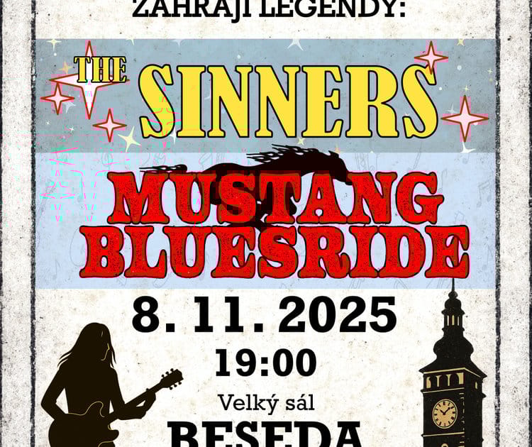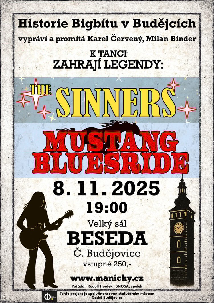 THE SINNERS & MUSTANG BLUESRIDE + Přednáška o historii bigbeatu v Českých Budějovicích