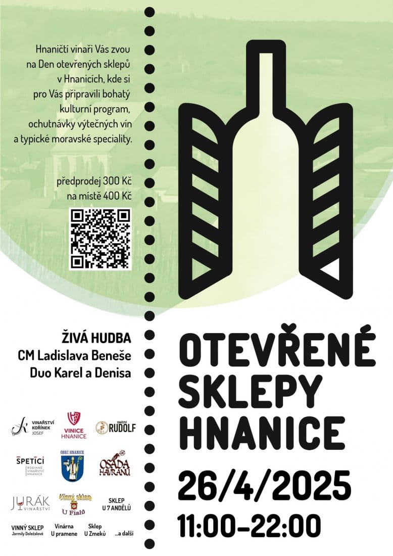 Další ročník oblíbené vinařské akce, kdy se veřejnosti otevře více než dvacítka vinných sklepů v Hnanických sklepních uličkách a místní vinaři nabídnou na tři stovky vzorků vín. Náladu zpříjemňuje během dne muzika i gastronomické dobroty. Vstupné (v předprodeji levnější než na místě) obsahuje skleničku, dva poukazy na nákup lahví vína i mapku otevřených sklepů. Jednotlivé vzorky vín podle vlastní chuti se pak hradí přímo u vinařů ve sklepích. Také letos bude posílena autobusová doprava ze/do Znojma. A opět můžete během akce využít praktickou mobilní aplikaci „Vinařský asistent“: https://hnanice.ad4wine.com