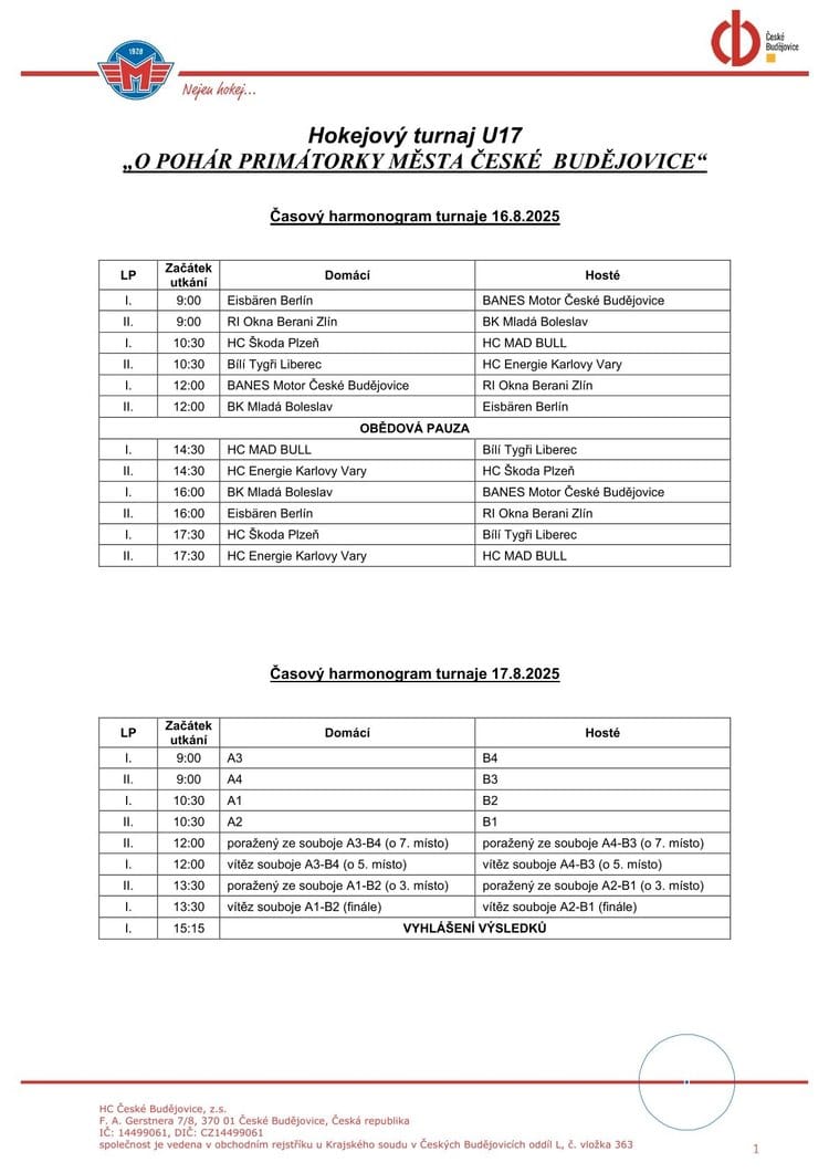 Hokejový turnaj U17 ,,O POHÁR PRIMÁTORKY MĚSTA ČESKÉ BUDĚJOVICE“