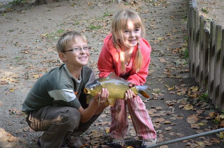 Zveme také všechny dětské rybáře k vyzkoušení chytání kaprů z hradního rybníka „na udičku pytlačku“ jako za starých časů. Kapři se však vrací zpět do rybníka! Udičky se půjčují na místě. Dva největší úlovky budou odměněny cenami (vyhlášení ve 12:15 a v 15:00 hod.). Pro děti i dospělé je připraveno občerstvení i možnost opékání špekáčků na ohni.
