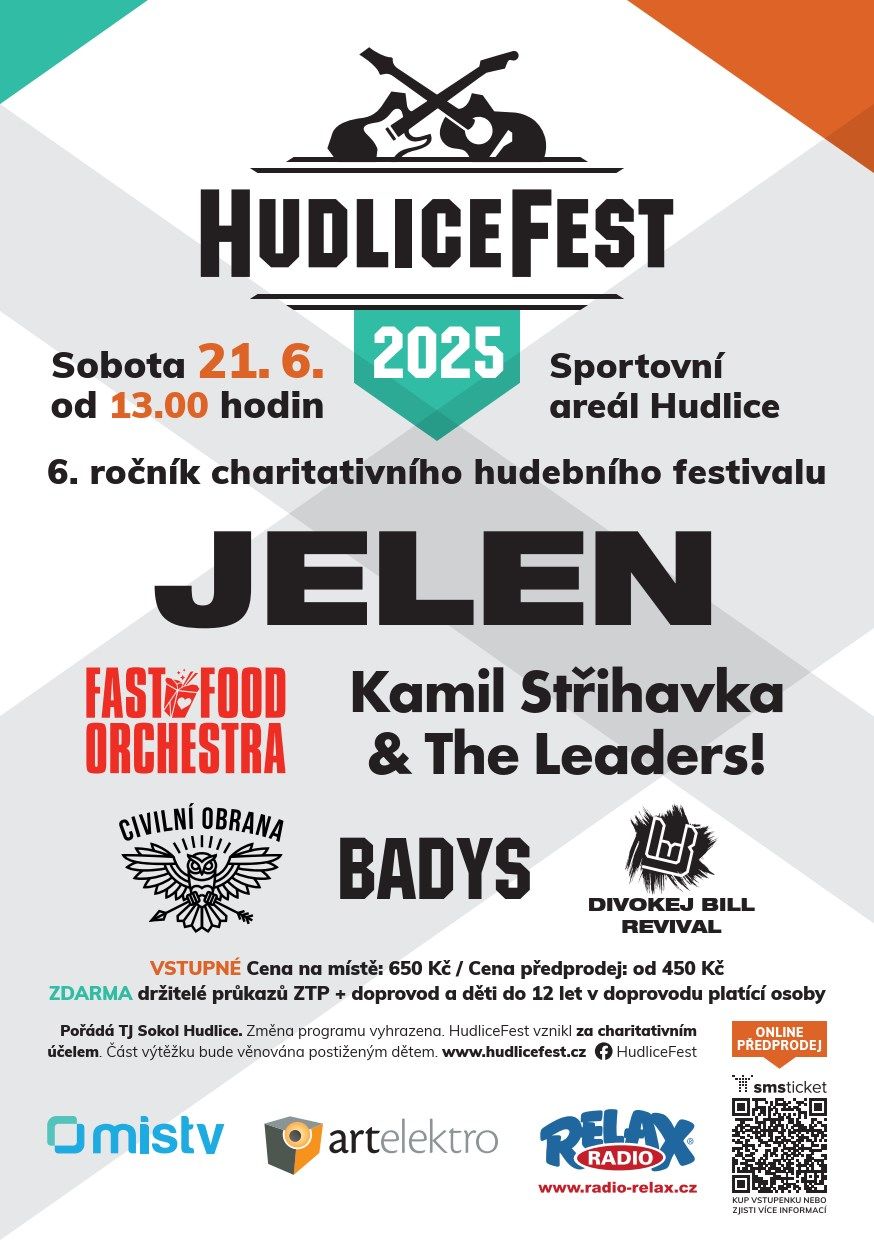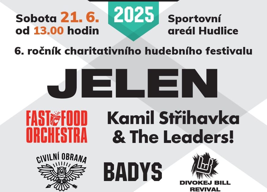 21.6.2025 od 13 hodin (brány festivalu se otevřou ve 12:30) se uskuteční ve sportovním areálu v Hudlicích 6. ročník charitativního festivalu HudliceFest.