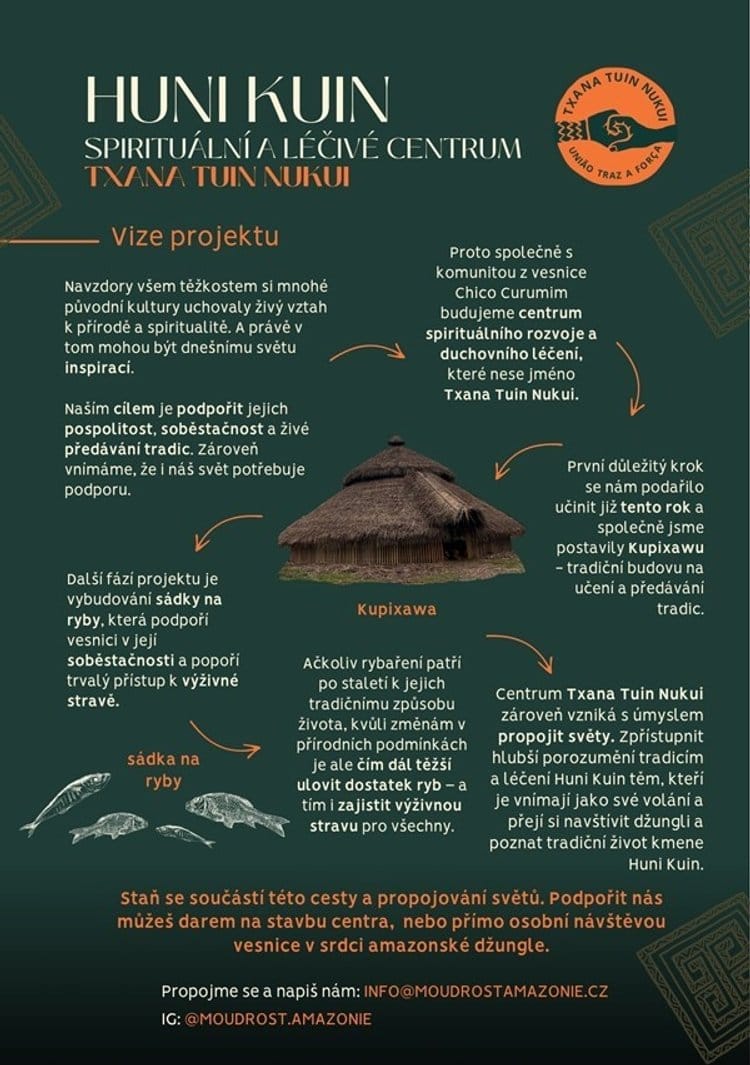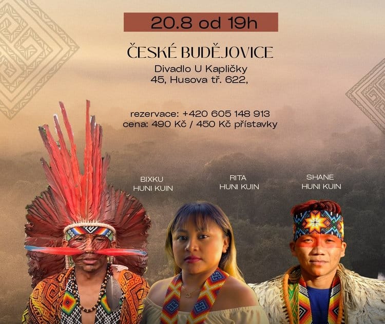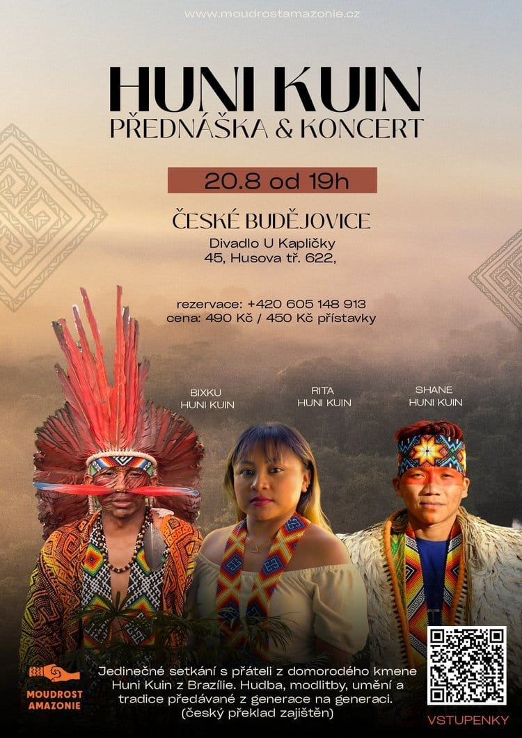 Spolu s TEREZOU a KAROLÍNOU DRAXLEROVOU Vás zveme na autentický večer s domorodým kmenem Huni Kuin z amazonské Brazílie. Přátelé z kmene nám přiblíží svou kulturu, tradice a každodenní život, doplněné ukázkami tradiční hudby a modliteb. Součástí večera bude prostor pro vaše otázky a možnost prohlédnout si či zakoupit jejich tradiční umění, originální šperky a obrazy vystavované v galeriích a muzeích po celém světě. Unikátní příležitost k setkání a hlubšímu porozumění amazonské kultuře a životu přírodních národů (překlad z portugalštiny do češtiny zajištěn).