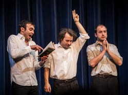 Improvozovna je show rozdělená na přibližně dvacetiminutové třetiny, ve kterých herci živelně rozvíjí nejrůznější témata, vyrovnávají se s omezeními, překonávají překážky, a to vše v komunikaci s publikem, které má možnost dění na jevišti ovlivňovat přímo v reálném čase. Nepřipoutávejte se, jedem!