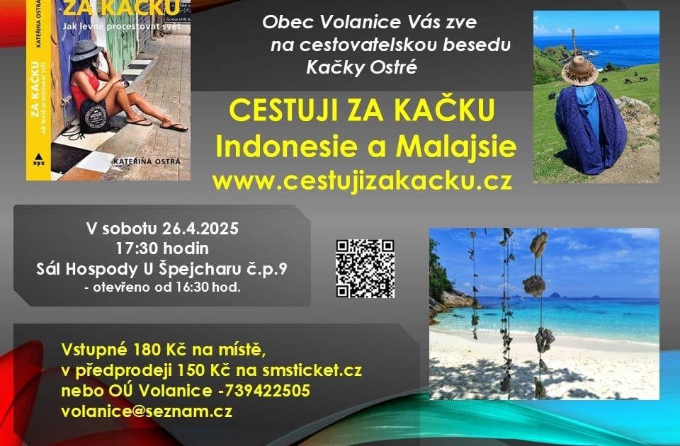 „Besídka“ populární cestovatelky a blogerky KATEŘINY OSTRÉ, známé jako „KAČKA“, která už mnoho lidí inspirovala k objevování světa s minimálními náklady, ale maximálními vjemy a zážitky. Úžasné malajsijské deštné pralesy, bohatá fauna i flóra, orangutani i sloni v přirozeném prostředí, čajové plantáže a také indonéský ostrov Lombok, kterému nechybí vůbec nic, co čekáte od Bali – to vše v podání akční, usměvavé a inspirativní cestovatelky.