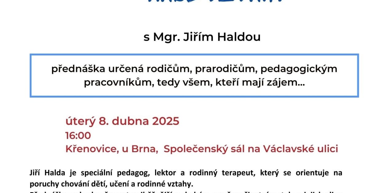 Přednáška Jiřího Haldy je určená rodičům, prarodičům, pedagogickým pracovníkům, tedy všem, kteří mají zájem…