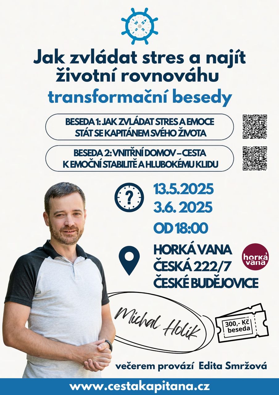 Přijďte na dvě jedinečné besedy, kde se naučíte, jak přestat být otrokem emocí a stát se Kapitánem svého života.