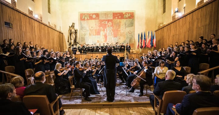 Slavnostní koncert při příležitosti 110. výročí narození Jana Hanuše. Collegium peadagogicum, smíšený sbor a orchestr Pedagogické fakulty UK, Piccolo coro & Piccola orchestra, bicí sekce Pražské konzervatoře, dětské pěvecké sbory Paleček, Pražská kantiléna, Radost Praha, Rolnička Praha, Slavíčci, sólisté Naděžda Chrobáková, Anna Moriová, Jan Morávek provedou kantátu Zpěv naděje a části Podzim a Zima z cyklu Český rok.