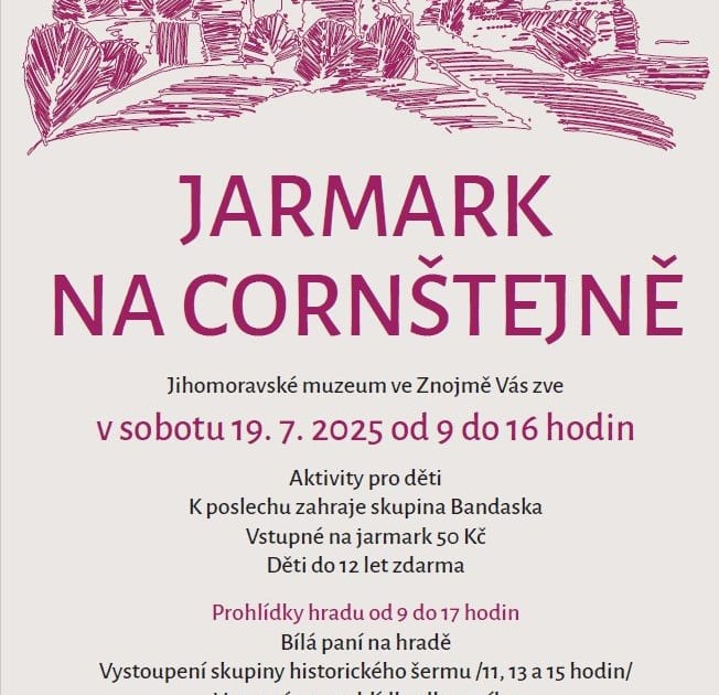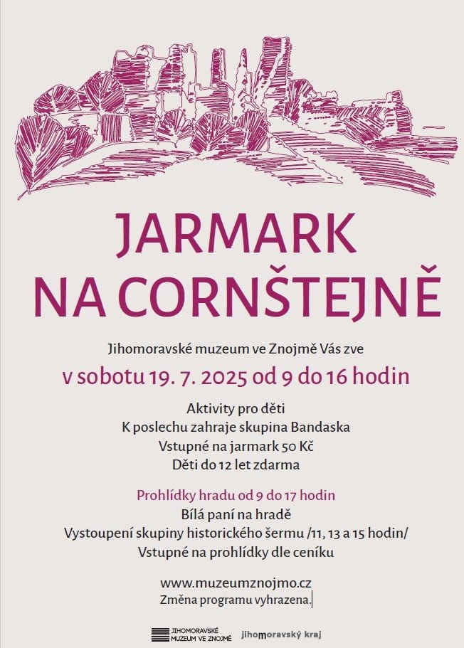 Milovníky středověku potěší celodenní jarmark s ukázkami dobových řemesel a bohatým doprovodným programem na zřícenině hradu Cornštejn nedaleko obce Bítov. Čekají Vás ukázky řemesel a řemeslných výrobků, hudební produkce, prohlídky s Bílou paní, šermířská vystoupení a další aktivity pro děti. Ochutnáte také středověké placky a kaše, domácí zavařeniny i sirupy a nakoupíte např. přírodní kosmetiku, sýry, sušené dobroty nebo domácí chléb či rukodělné výrobky.