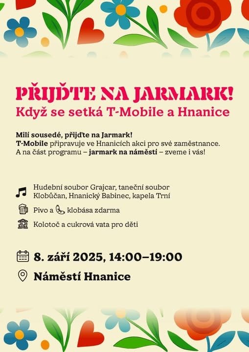 Na začátku září se koná jarmark i v obci Hnanice. Folklorní slavnost je vhodná i pro děti pro které budou nachystány atrakce a občerstvení. K poslechu i tanci zahraje kapela Trní, vystoupí taneční soubor Klobůčan a hudební soubor Grajcar. Akce začíná od 14 hod.