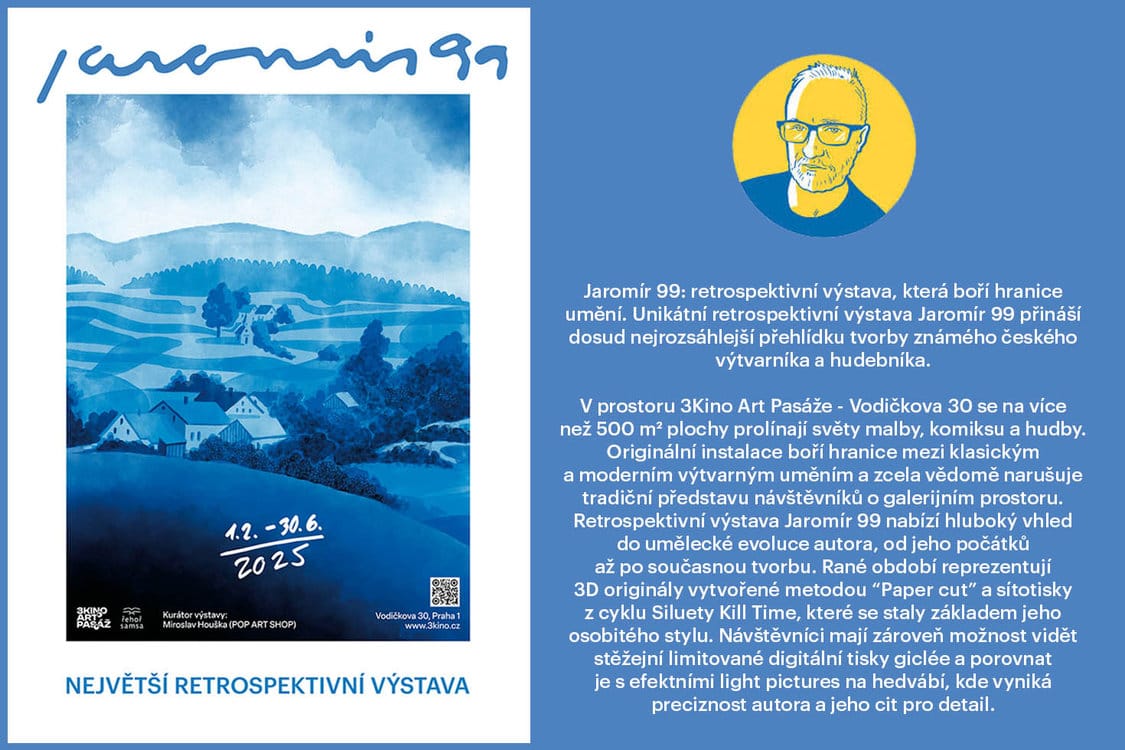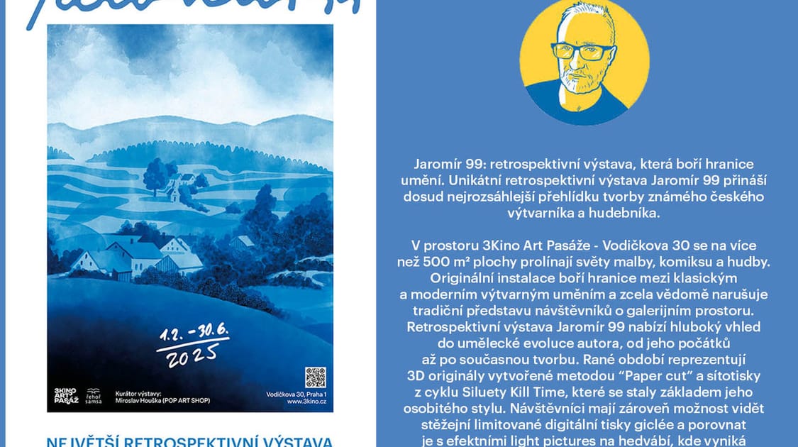 Unikátní retrospektivní výstava Jaromír 99 přináší dosud nejrozsáhlejší přehlídku tvorby známého českého výtvarníka a hudebníka.