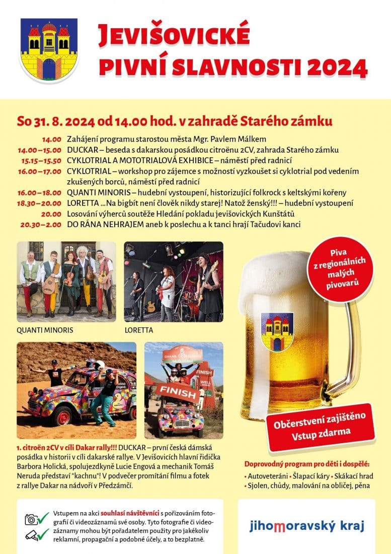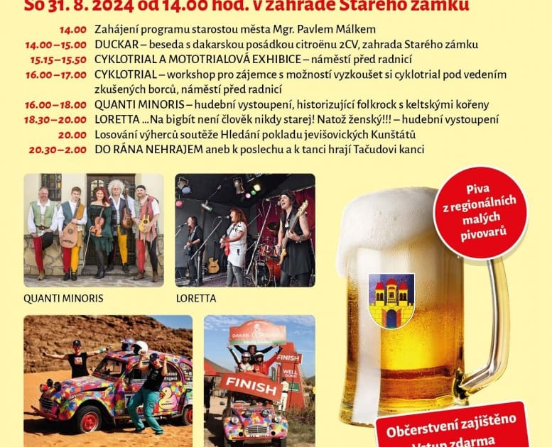 Zahrada Starého zámku v Jevišovicích nabídne od 14 hod. zábavu pro celou rodinu. Kromě přehlídky regionálních piv se těšte na hudební vystoupení, program pro děti, autoveterány, cyklo a mototrialové exhibice i večerní taneční zábavu.