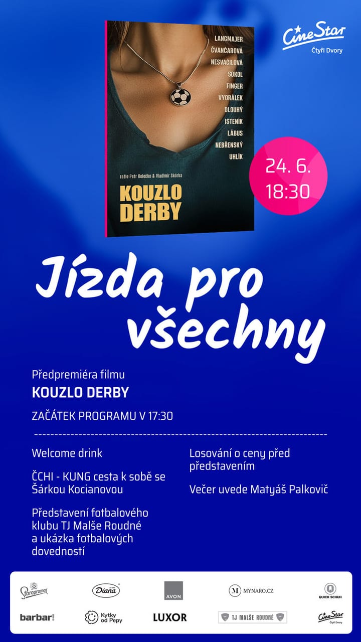 Jízda pro všechny s filmem Kouzlo derby, welcome drink, losování o ceny.