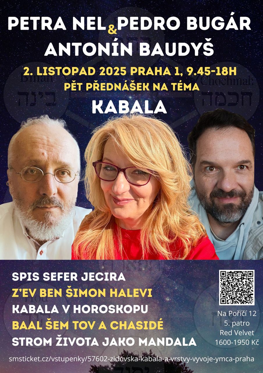 Seminář bude obsahovat několik přednášek, které se pokusí obsáhnout téma kabaly a židovské mystiky z hlediska skutečného obsahu, dobového kontextu a vybraných protagonistů, představí Pedro Bugár a Antonín Baudyš. Zároveň bude ukázána provázanost s astrologickou praxí, představí Petra Nel. Ze semináře je pořízován videozáznam, který se vstupenkou automaticky dostanete na Váš e-mail zhruba po týdnu. Kdo se nemůže zúčastnit osobně, může si objednat pouhé videozáznamy za zvýhodněnou cenu.