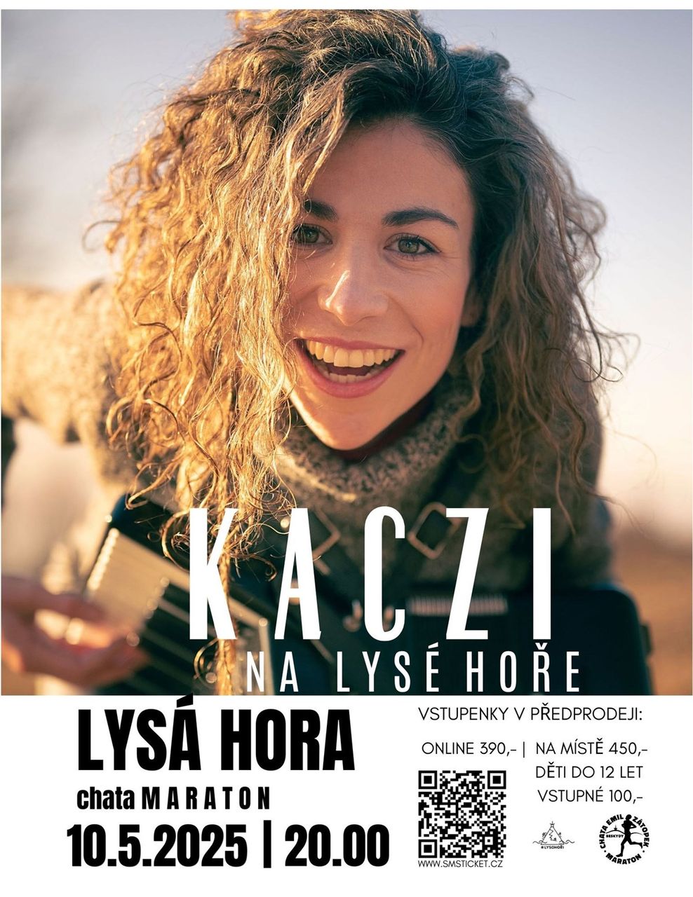 Písničkářka Kaczi (akordeon, kytara, ukulele, piano) se vrací už po šesté na Lysou horu. Kdy? V sobotu 10.5. od 20:00h.