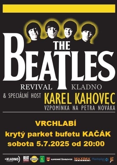 Jedinečný koncert v sobotu 05.07.2025 od 20:00 na krytém letním parketu bufetu Kačák ve Vrchlabí . Legendární Karel Kahovec vystoupí společně s jednou s nejlepších světových Beatles Revival kapel – The Beatles Revival