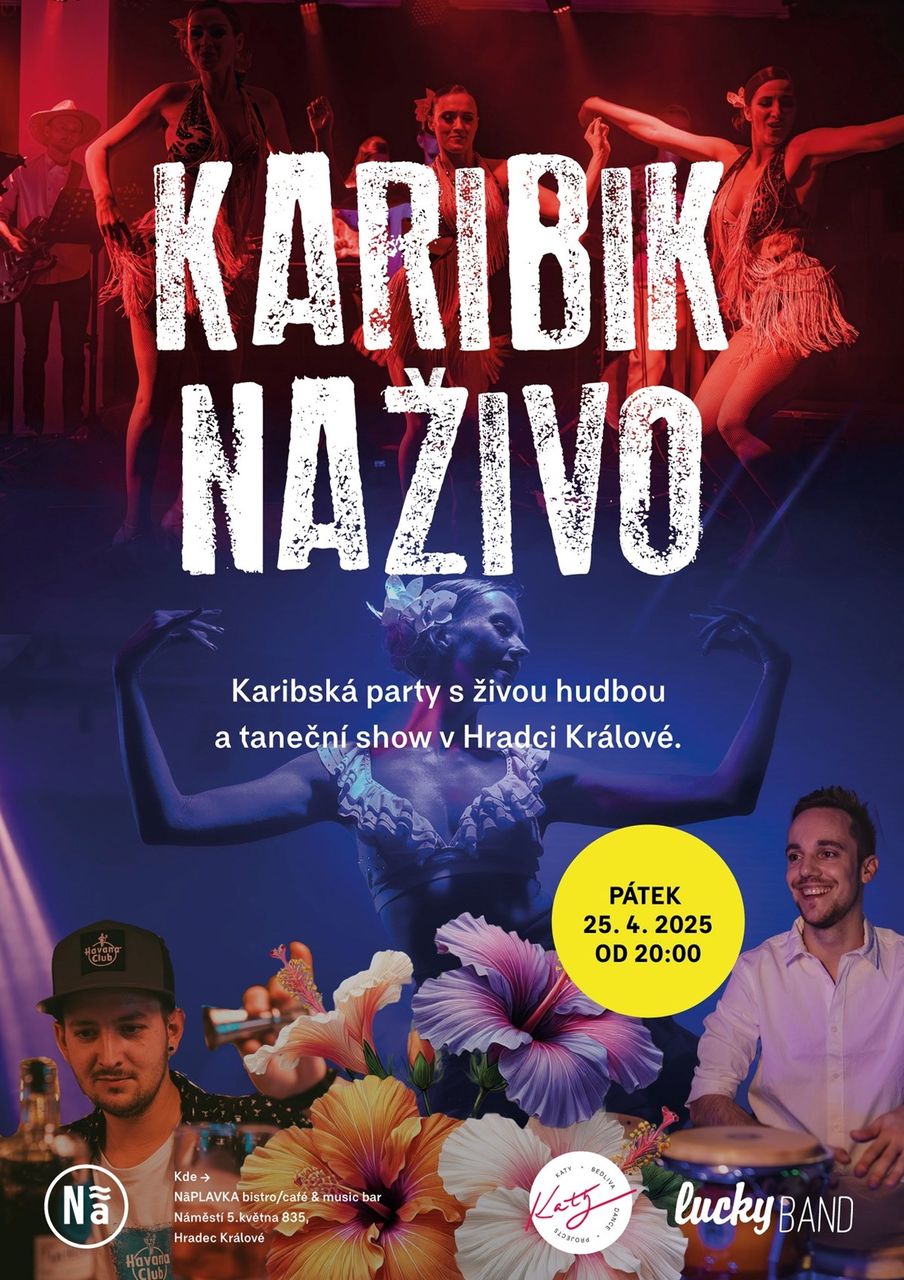 V pátek 25. dubna tě čeká, na Náplavce již druhý, koncert kapely LuckyBand v karibském rytmu (salsa, bachata) s energickou taneční show by Katy Bedliva Dance Company.