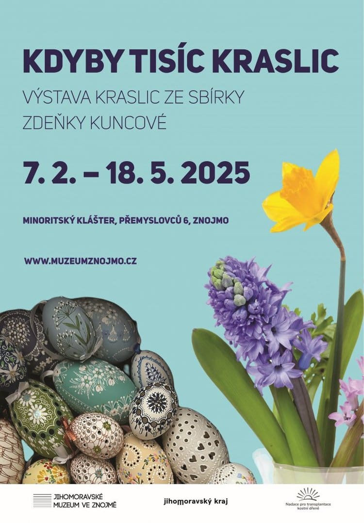 V rámci výstavy můžete svými zdobenými vajíčky podpořit dobročinný bazar KRASLICE PRO ŽIVOT pro Nadaci pro transplantace kostní dřeně. Přineste od 15. 3. do 15. 4. 2025 na pokladnu Minoritského kláštera své kraslice pro dobročinný trh malovaných vajíček, který nadace bude ve Znojmě pořádat o Velikonocích.