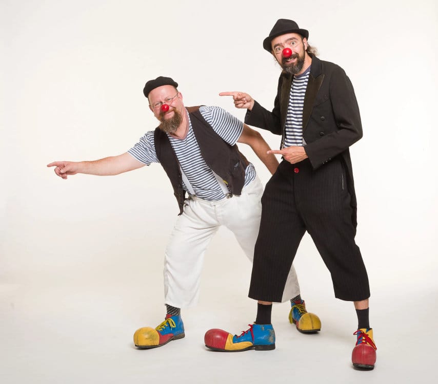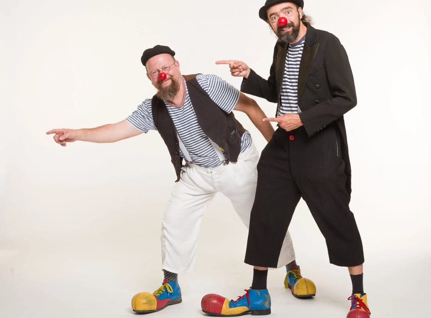Co všechno je ukryto v kufru dvou klaunů? K jakým bláznivým situacím je tyto „věci“ přivedou? Nad čím budete žasnout s otevřenou pusou a čemu se budete chechtat až Vás bude bolet bránice? Vystoupení klaunů, kteří do svých aktivit vtahují jak dětské, tak dospělé diváky.