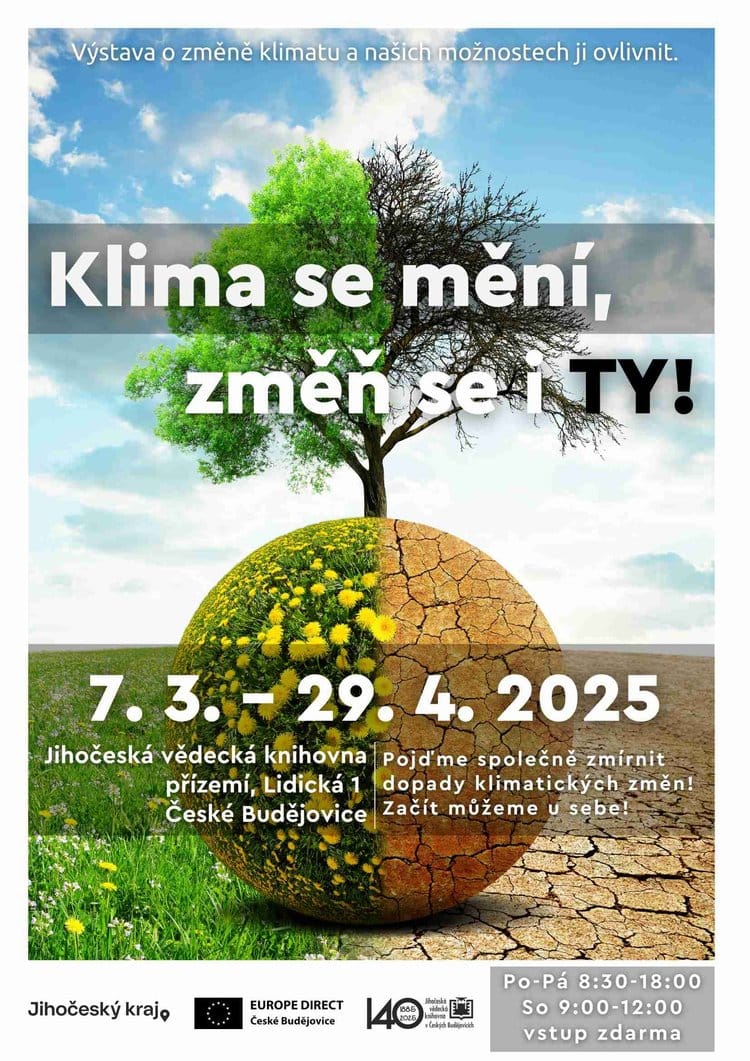 Výstava o změně klimatu a našich možnostech ji ovlivnit. Výstavu je možné navštívit v době otevření knihovny. Těšíme se na Vás v knihovně Lidická 1 (přízemí).