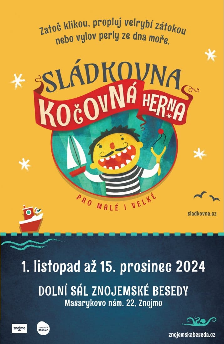 Dolní sál Znojemské Besedy přivítá na měsíc a půl kočovnou hernu manželů Sládkových jménem „Sládkovna“. Interaktivní herna pro malé i velké nabídne originálně výtvarně zpracované a do posledního detailu promyšlené mechanické hry inspirované starými poutěmi, také tajemné labyrinty či vodní kanály. Staňte se na chvíli perlolovcem i perloborcem, rozluštěte tajemství Bermudského trojúhelníku, prokličkujte labyrintem uliček, vyzkoušejte surf na suchu nebo se pokuste rozhýbat figurky okresního přeboru. A protože se blíží Vánoce, budete moct vstoupit také do betléma s obřím adventním kalendářem. Nejedná se o výstavu, ale o interaktivní prostor, ve kterém si vyzkoušíte ostrost mušky, pohotovost, trpělivost, schopnost spolupráce, sílu nebo postřeh. Bavit se bude zaručeně každý, a kromě zážitku si odnesete i něco na památku.