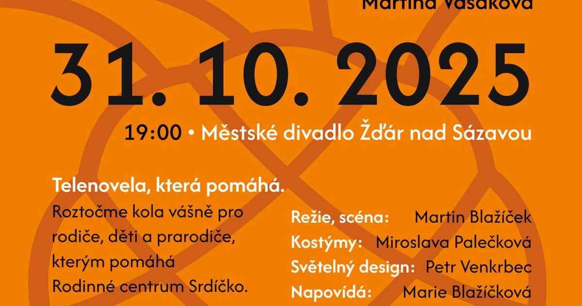 Toto představení má hlubší rozměr. Výtěžek pomůže rozsvítit světlo tam, kde je ho nejvíc potřeba – rodičům, dětem i seniorům ze Žďáru nad Sázavou, kteří v Rodinném centru Srdíčko nacházejí bezpečný přístav, prostor pro sdílení, růst i obyčejnou lidskou blízkost. Každá vstupenka je jako malý paprsek, který rozzáří den někomu, kdo právě potřebuje světlo.