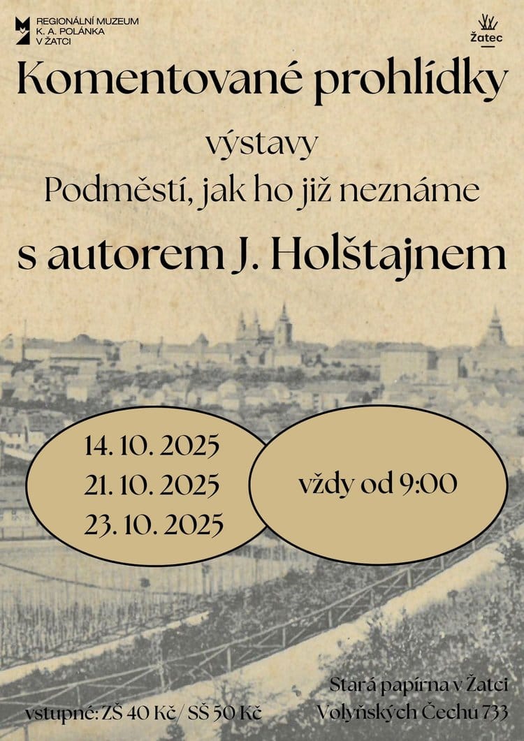 Regionální muzeum K. A. Polánka v Žatci připravilo pro veřejnost komentované prohlídky výstavy Podměstí, jak ho již neznáme. Návštěvníky jimi provede autor výstavy Jaroslav Holštajn.