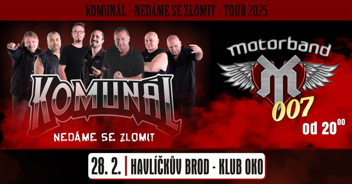 KOMUNÁL vyráží na turné k nově vydanému CD Nedáme se zlomit. Společně se skvělou teplickou partou MOTORBAND, která nedávno vydala album 007, navštíví kulturní domy a kluby po celé republice. Tohle spojení dle prvních ohlasů , vyvolává u fanoušků obou kapel velké nadšení. Proto všichni věříme, že se všichni společně sejdeme na Nedáme se zlomit Tour 2025.