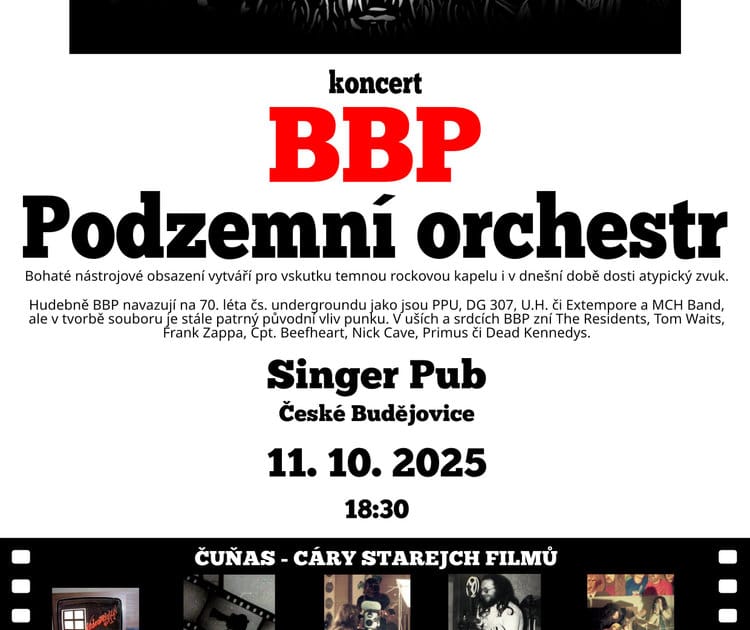 Koncert BBP Podzemní orchestr a promítání Cáry Starých Filmů ubytování v okolí