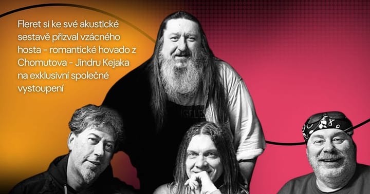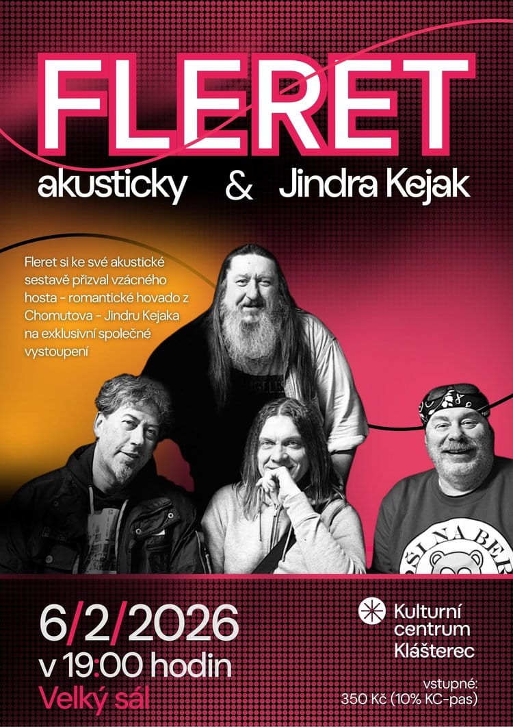 Program:Fleret si ke své akustické sestavě přizval vzácného hosta – Jindru Kejaka, romantické hovado z Chomutova, na exkluzivní společné vystoupení.