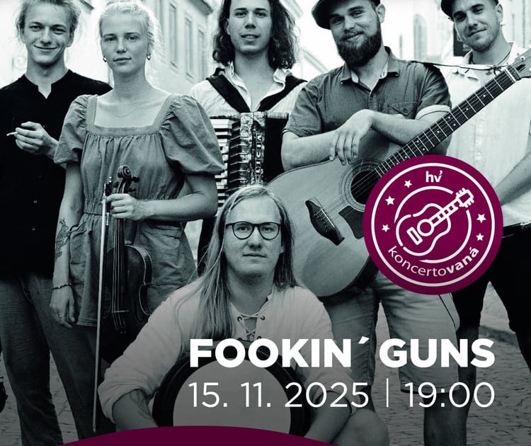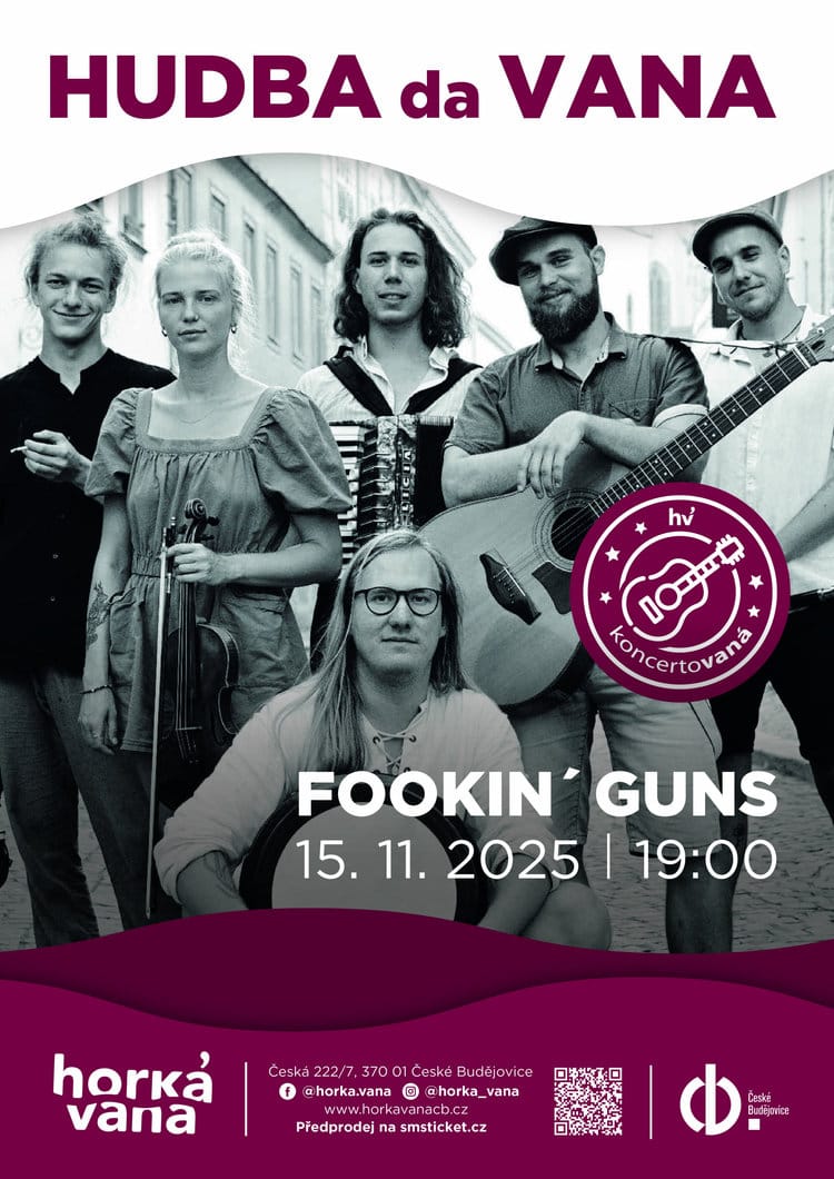 Mladí, divocí a zatraceně nakažliví a trochu šílení Fookin’ Guns – banda, co má housle, akordeon, kytary, zpěvy a servíruje pořádný IRSKÝ PUB hukot. Přijdou, otočí svět vzhůru nohama a zanechají za sebou smích, tanec a hromadu prázdných půllitrů. – prostě Fookin’ Guns, jak je Vana zná a miluje.