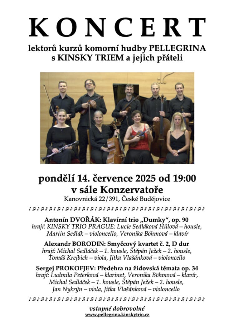 Koncert lektorů mezinárodních kurzů komorní hudby PELLEGRINA s KINSKY TRIEM a jejich přáteli.