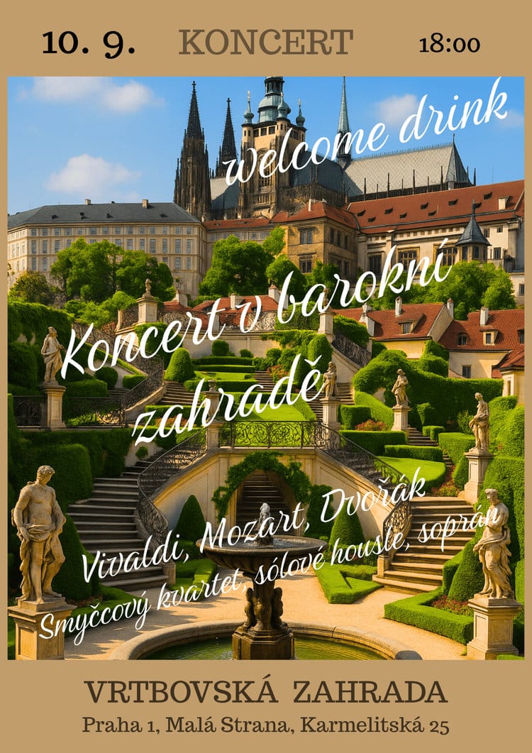 Srdečně vás zveme na jedinečný hudební večer v barokní Vrtbovské zahradě, plný vášnivých melodií a virtuozních skladeb v podání mistrů barokní a romantické hudby – Antonia Vivaldiho, Niccolo Paganiniho, W. A. Mozarta a Antonína Dvořáka.