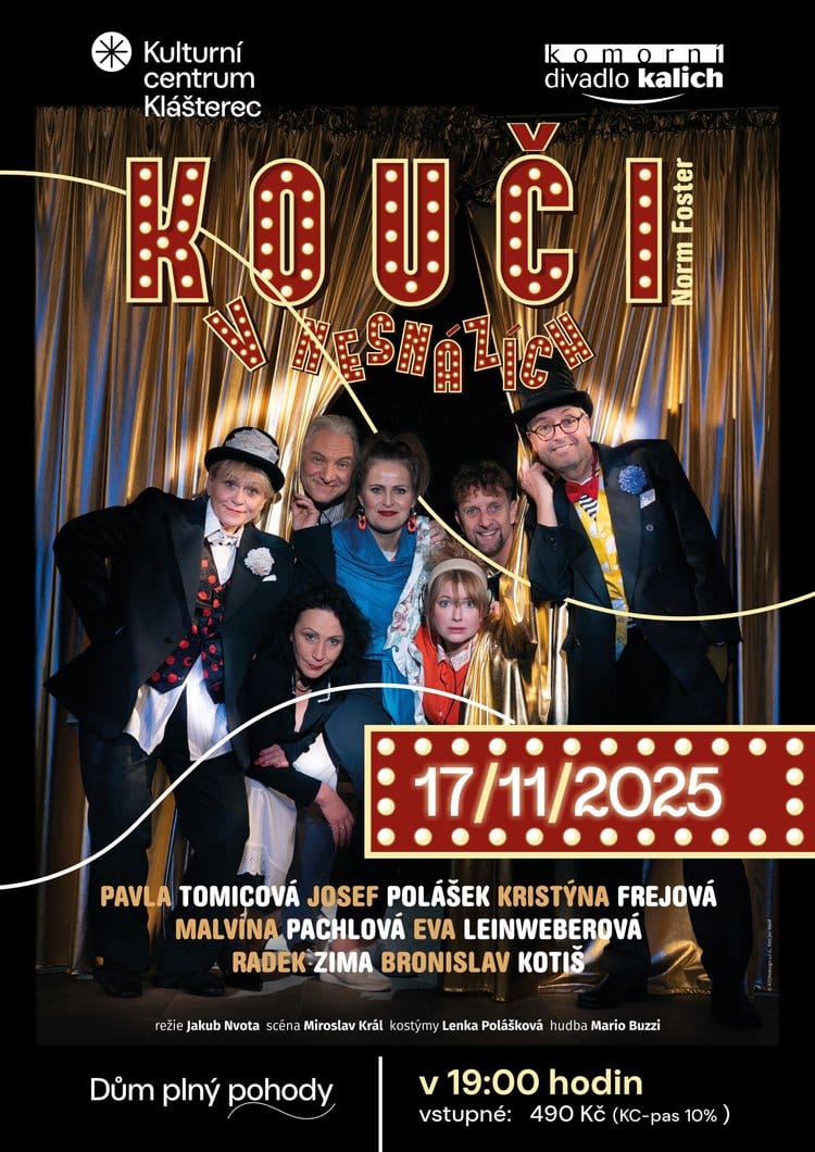 Kouč v nesnázích – bláznivá komedie z produkce Komorního divadla Kalich Kdy: 17. listopadu 2025 od 19:00 Kde: Kulturní centrum Klášterec Vstupenky: https://www.kcklasterec.cz