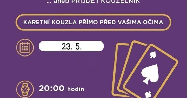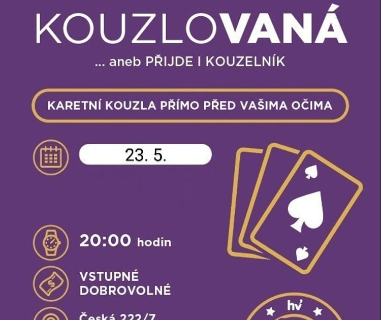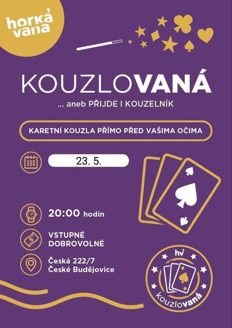Pátek v Horké Vaně s nádechem karetních kouzel! V průběhu večera bude hosty obcházet karetní kouzelník Petr Doležel a zájemcům přímo u jejich stolů předvádět karetní triky. Přijďte se s kouzly pobavit možná se o nich i něco dozvědět… Bar otevřen od 18:00 Začátek ve 20:00 Vstupné dobrovolné do klobouku.