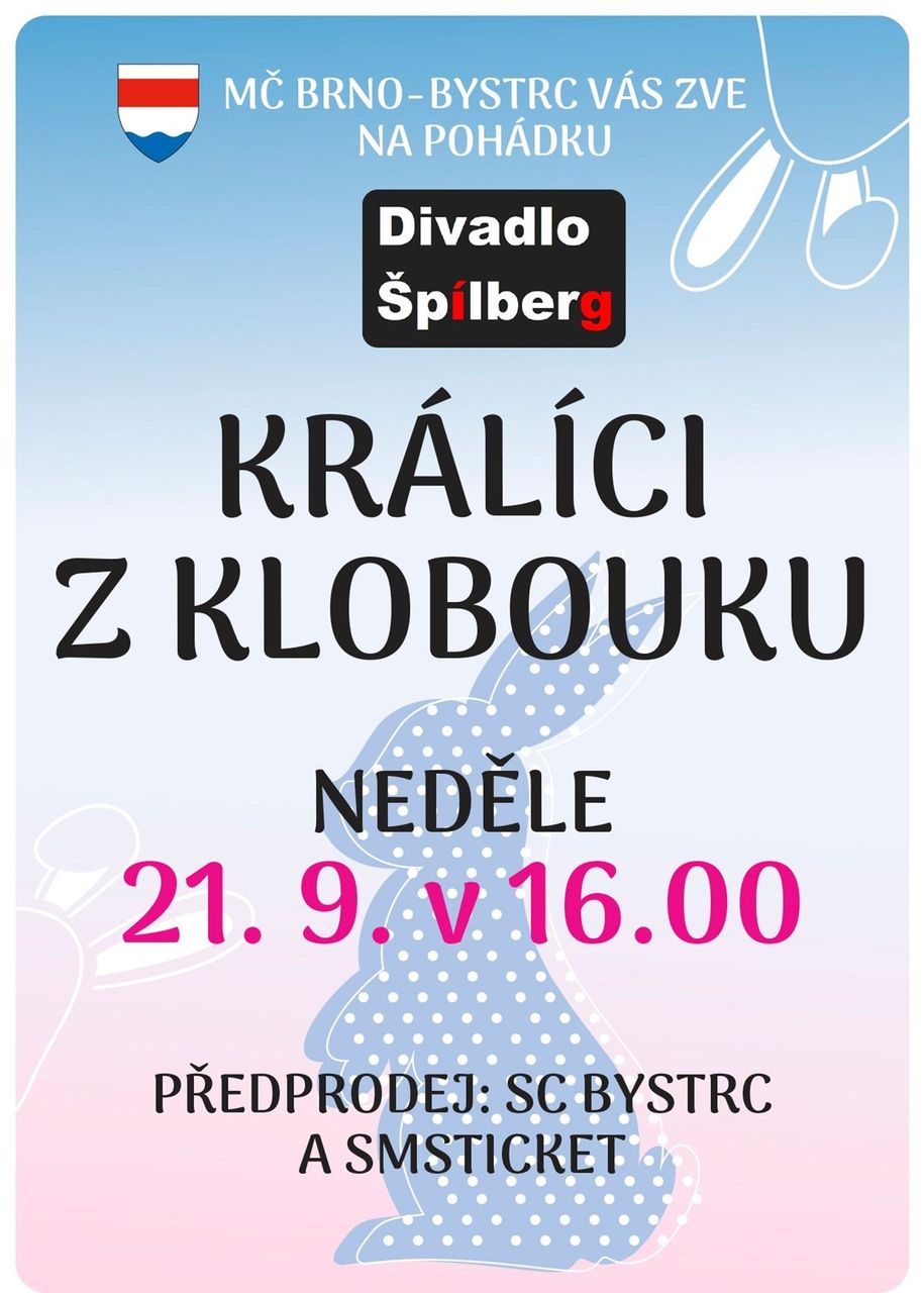 Veselé divadelní představení pro děti, které oživuje oblíbené postavičky Boba a Bobka – dva králíky z kouzelníkova klobouku. Divadlo Špílberg přináší na scénu známé příběhy z televizního večerníčku v muzikálovém kabátě plném písniček a humoru.