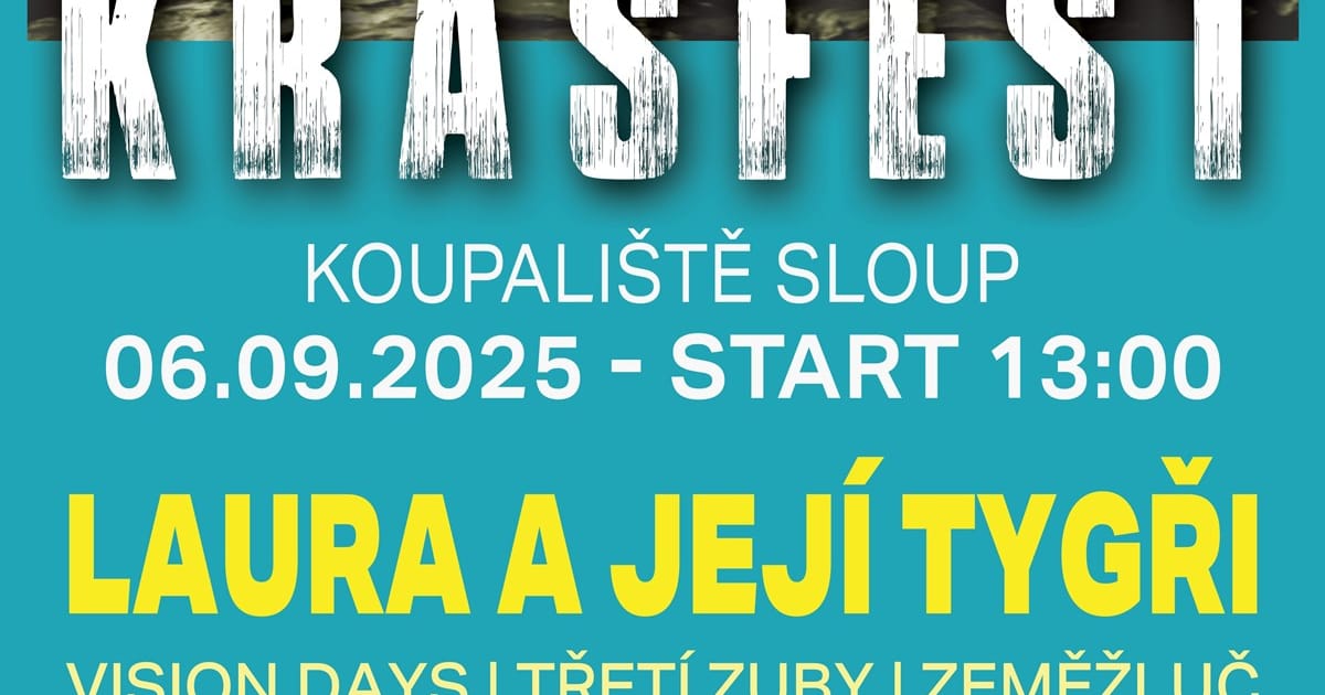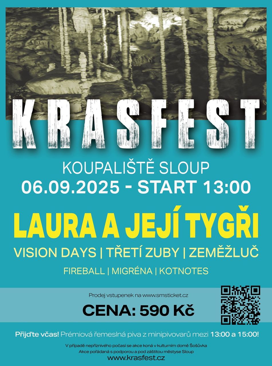 Krasfest – již 5.ročník multižánrového hudebního festiválku (rock, punk) v krásném areálu Koupaliště ve Sloupu, srdci Moravského krasu.
