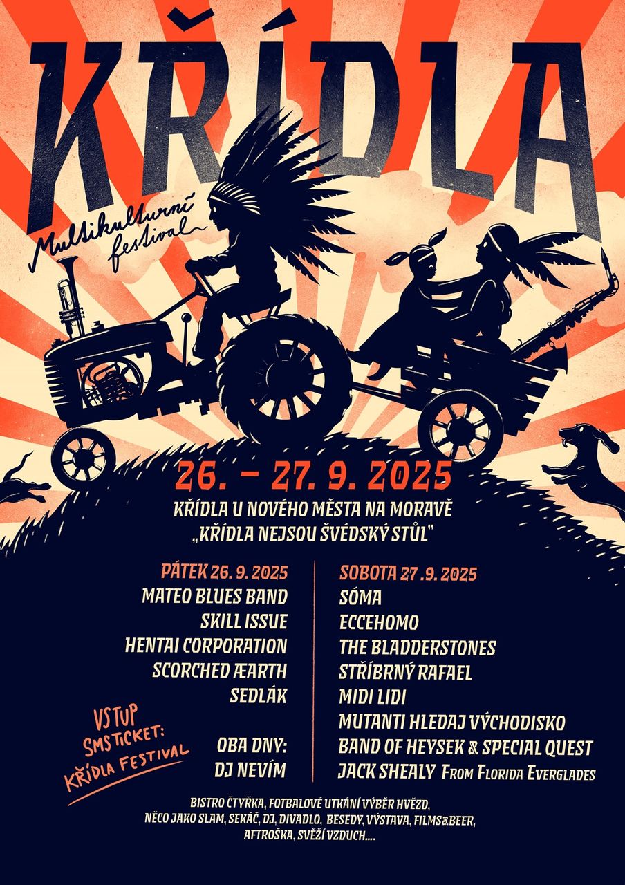 Křídla u Nového Města na Moravě se opět promění v místo plné hudby, smíchu a inspirace. Čeká vás nabitý víkend s kapelami, divadlem, výstavami, bleším trhem, dobrým jídlem a kávou – a také místo nečekaných setkání s hvězdami z celého světa, které byste tady nikdy nečekali.
