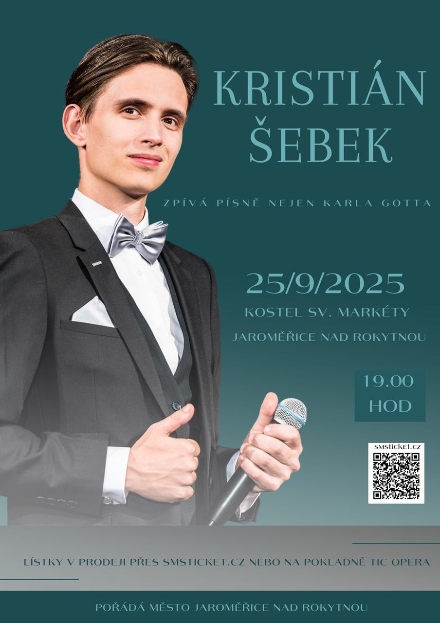 Přijďte si užít večer plný emocí, skvělé hudby a charismatického hlasu mladého talentovaného zpěváka Kristiána Šebka.