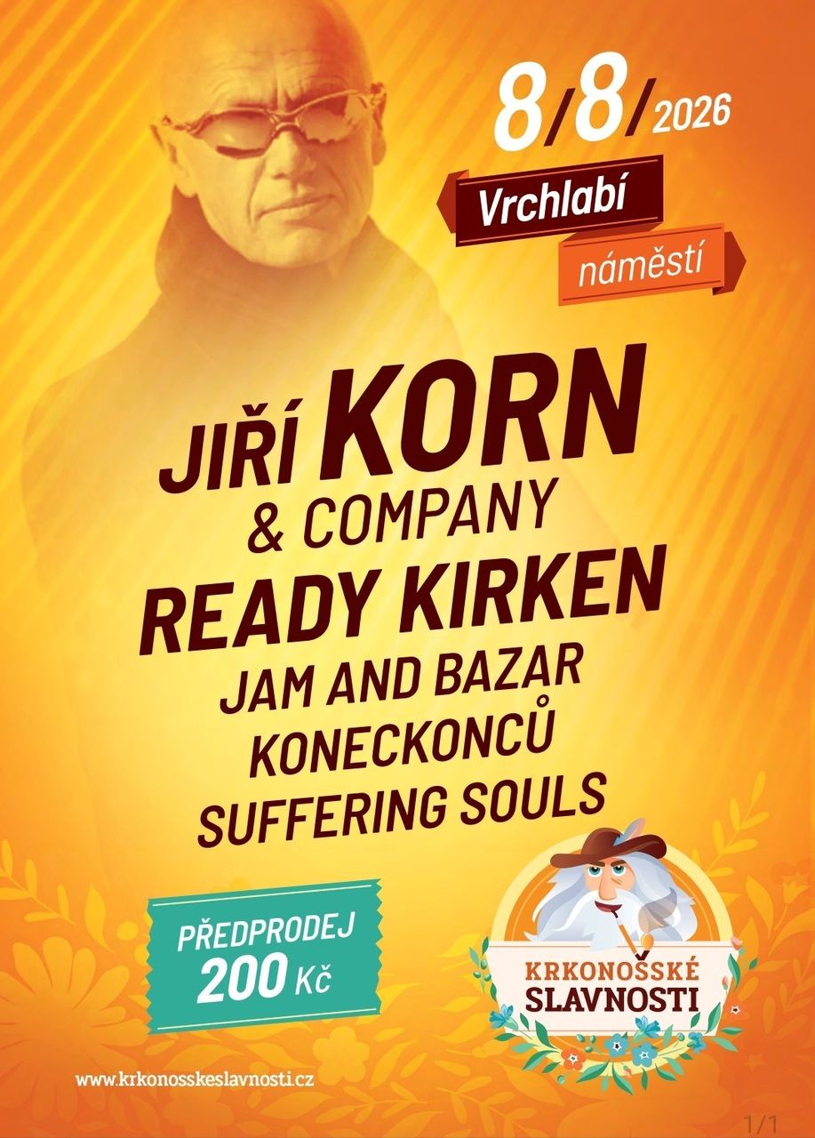 Vystoupí egendární Jiří Korn. Dále Ready Kirken, Jam and Bazar, Koneckonců, Suffering Souls a další.