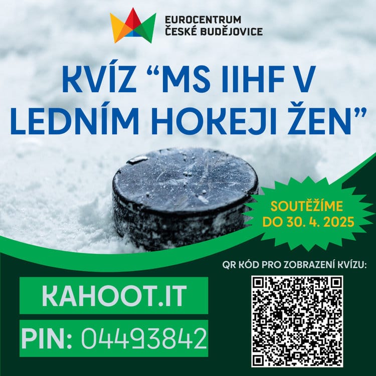 V dubnu 2025 se v Českých Budějovicích koná Mistrovství světa IIHF v ledním hokeji žen. Eurocentrum České Budějovice pro Vás při této příležitosti připravilo online kvíz – vyplnit ho můžete do 30. 4. 2025.