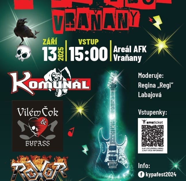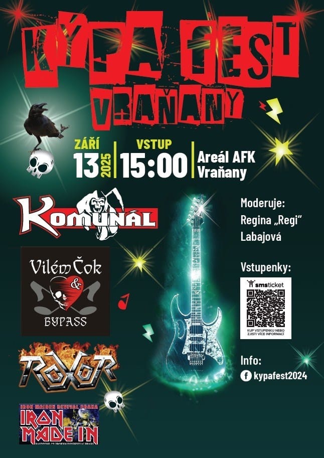 Přijďte si užít konec léta a podpořit pořádnej heavík v podání kapel – Komunál, Roxor, Vilda Čok & Bypass a Iron Maiden Praha.