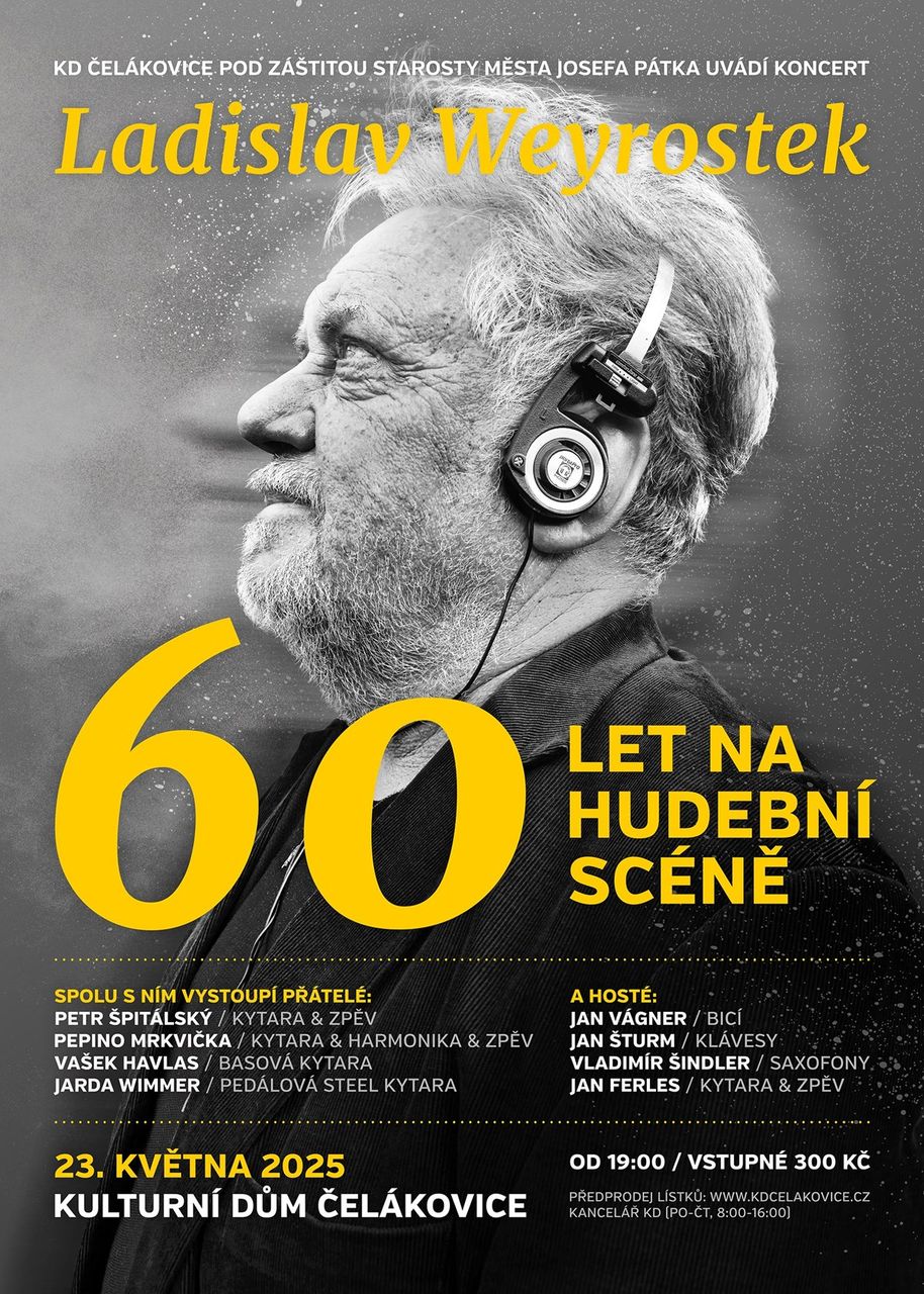 KD Čelákovice pod záštitou starosty města Josefa Pátka uvádí koncert – Ladislav Weyrostek 60 let na hudební scéně.