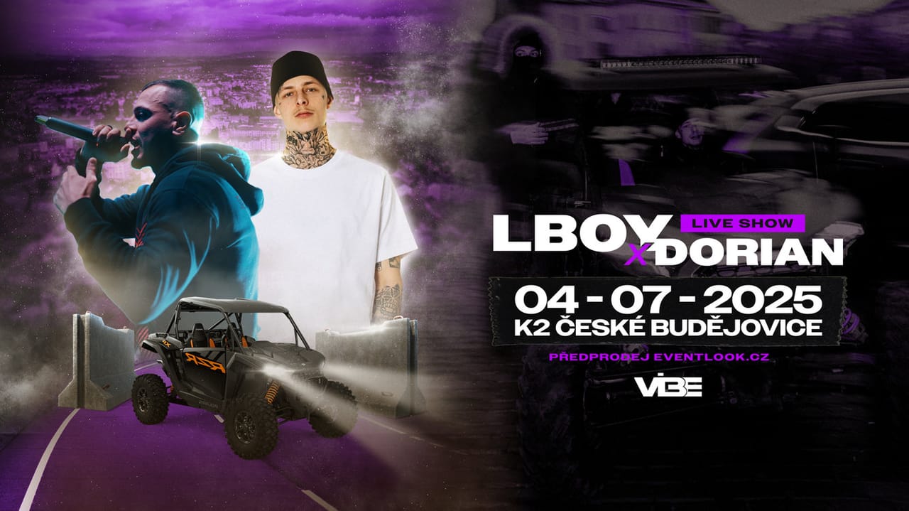 LBOY a DORIAN zakončují svůj společný „Drive By“ tour v Českých Budějovicích, kde na ně v pátek 4. července 2025 čeká Klub K2 na Sokolském ostrově!