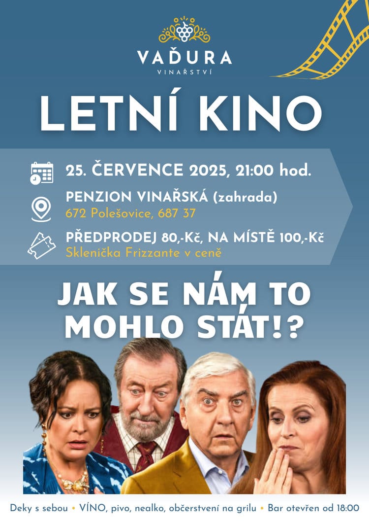 V případě nepříznivého počasí se promítání ruší, ale bar i degustační místnost zůstanou otevřené.