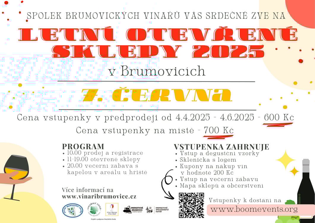 – 10.00 hod. zahájení akce, prodej vstupenek a výdej skleniček na obecním úřadě (Brumovice 155)