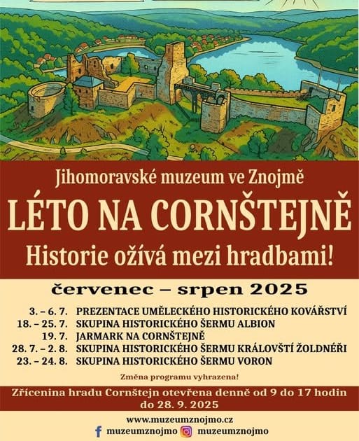 Jihomoravské muzeum ve Znojmě připravuje každoročně pestrý prázdninový program také pro návštěvníky zříceniny hradu Cornštejn nedaleko obce Bítov. I letos zde nabídne šermířská vystoupení, středověký řemeslný jarmark nebo historické kovářství.