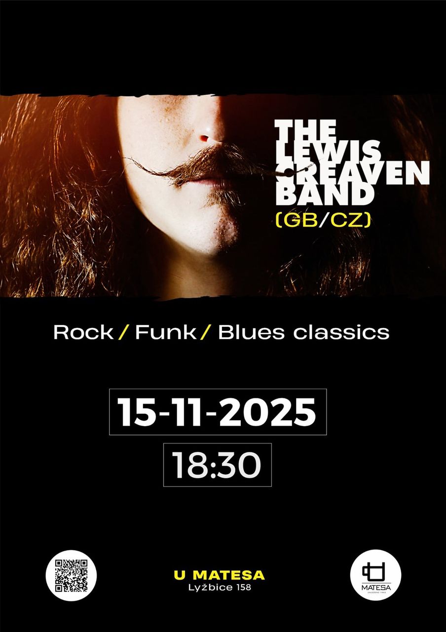 Lewis Creaven – rodák z Bristolu – a jeho společníci nás provedou večerem plným živé muziky. Uslyšíte Rock, Funk a Bluesovou klasiku. Zazpíváme, zatančíme. Tohle bude mít extra šťávu!