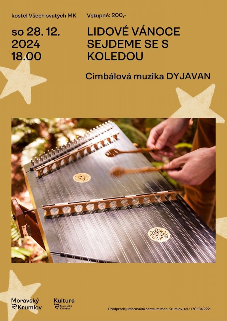 Cimbálová muzika Dyjavan zve na vánoční muzikantské setkání s koledou do kostela Všech svatých v Moravském Krumlově, které začne v 18 hod.