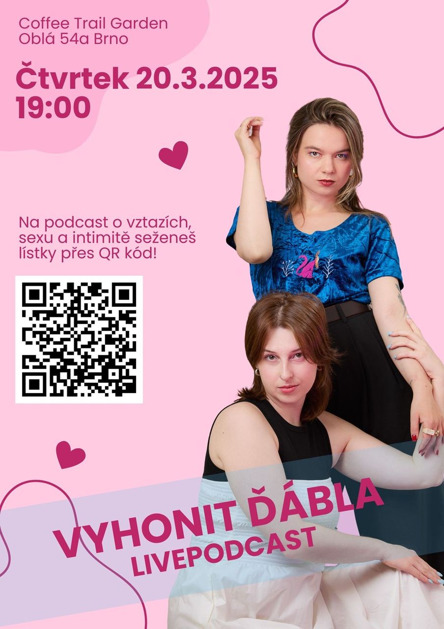 Live podcast Vyhonit ďábla zavítá (poprvé) na periferií do Nového Lískovce v Brně! Můžete se těšit na duo Zuzany a Terézie z populárního podcastu Vyhonit ďábla, který si nebere servítky s ničím a nikým, pro nějž žádné téma není tabu!